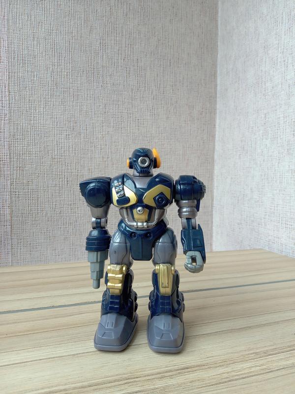 Робот-воин Hap-p-kid черный со световым и звуковым эффектами 17,5 см Вместе с новым роботом-воином Робот движется вперед, вращает головой и конечностями. Движение робота сопровождается световыми и звуковыми эффектами, что делает игру более интересной. Рекомендуемый возраст - от 3-х лет. Состояние очень хорошее Цена: 150 грн