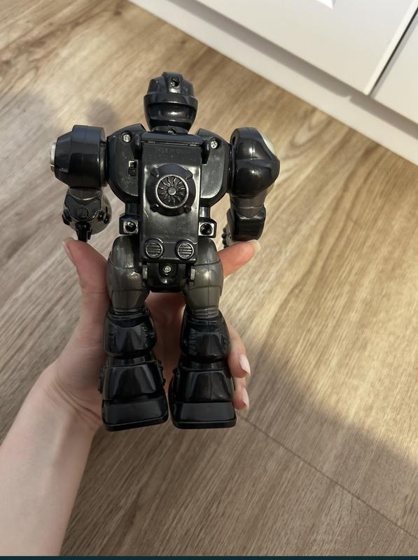 Ходить та їздить на коліщатках. Рухливі руки. Видає звуки. Керується за допомогою кнопки на самому роботі. Подряпин немає. Б/у, але дитина гралася тільки тоді, коли подарували, далі просто стояв. Тому стан як новий.