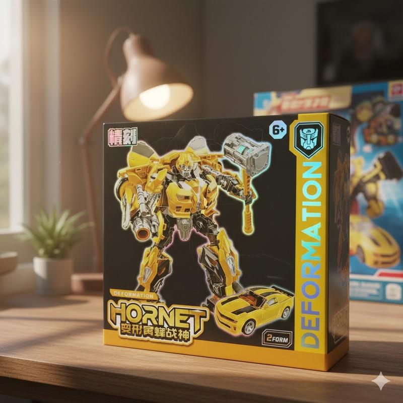 Трансформер Хорнет (Hornet) / Бамблби Bumblebee – Машинка-Робот 2в1 – Игрушка 23 см Встречайте отважного воина в своей коллекции! Этот трансформер Хорнет (Hornet) – яркий желтый робот, который соответствует культовому персонажу Бамблби (Bumblebee) из фильмов и мультсериалов! Эта игрушка обеспечивает увлекательную игру 2 в 1: от мощного робота до стильного спорткара! Ключевые Особенности Трансформера: Персонаж: Хорнет (Hornet) – стилизация под Бамблби (Bumblebee). Трансформация 2 в 1: Легко превращается из детализированного робота-воина в желтый спортивный автомобиль (Chevrolet Camaro, характерный для Бамблби). Детализация: Высокая детализация и яркий желто-черный дизайн делают игрушку заметной и привлекательной. Возраст: Рекомендовано для детей в возрасте 6+. Габариты Модели: Высота в режиме Воина (Робот): составляет 23 см. Длина в режиме Автомобиля: составляет 20 см. Преимущества: Популярный Герой: Бамблби – один из самых любимых персонажей среди фанатов трансформеров. Развитие Навычек: Трансформация способствует развитию мелкой моторики, логического мышления и пространственного воображения. Прочная Конструкция: Качественный пластик обеспечивает долговечность игрушки. Идеальный Подарок: Отличный подарок для мальчиков на День Рождения, Новый год или любой другой праздник. Обеспечьте защиту своей коллекции! Закажите Трансформера Бамблби/Хорнет сегодня!