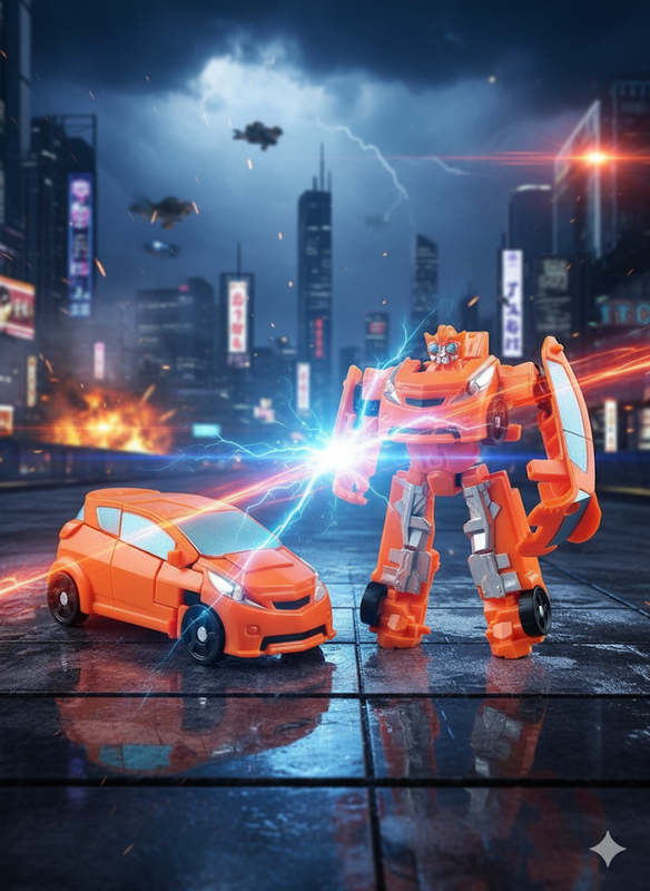 Робот-трансформер Міні: Помаранчева машинка — Іграшка 2-в-1 — 7 см Приготуйтеся до захопливих пригод із компактним захисником! Цей яскравий міні-трансформер поєднує в собі швидкість спортивного авто та силу бойового робота. Завдяки простій системі трансформації, дитина зможе миттєво змінювати хід гри. Особливості та функціональність: Подвійна трансформація: Лише за кілька рухів потужний бойовий робот перетворюється на стильний помаранчевий спорткар. Яскравий дизайн: Насичений помаранчевий колір із чорними та сірими деталями робить іграшку помітною та привабливою. Робот має деталізований "шолом" та елементи броні. Компактний формат: Висота 7 см дозволяє дитині брати улюбленого героя з собою на прогулянку, у садочок чи подорож — він легко поміститься у кишені. Розвиток навичок: Процес трансформації чудово тренує дрібну моторику рук, логічне мислення та уяву. Технічні характеристики: Тип: Робот-трансформер (міні). Форма: Машинка / Робот. Колір: Помаранчевий. Висота: 7 см. Матеріал: Якісний та безпечний пластик. Вік: Рекомендовано для дітей від 3-х років. Чому варто обрати цього міні-трансформера: Універсальність: Це і машинка для перегонів, і персонаж для бойових сюжетів — ідеально для різнопланових ігор. Надійність: Деталі міцно з'єднані між собою, що забезпечує довговічність іграшки навіть при частому складанні та розкладанні. Зберіть команду: Міні-формат дозволяє легко зібрати цілу армію трансформерів для масштабних битв! Ставайте частиною команди автоботів! Замовляйте помаранчевий міні-трансформер прямо зараз!