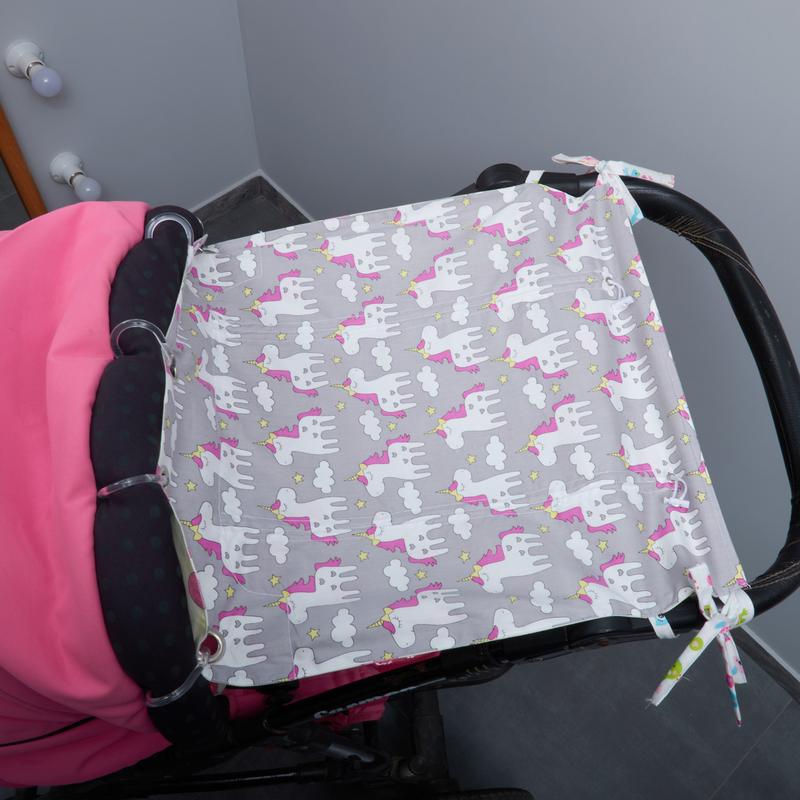 Солнцезащитная шторка на коляску, с принтом - единороги + мороженки
