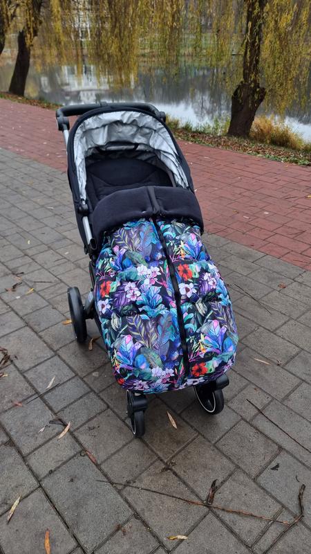 Зимний футмуф в коляску, конверт трансформер большой, просторный, удобный. принт цветы