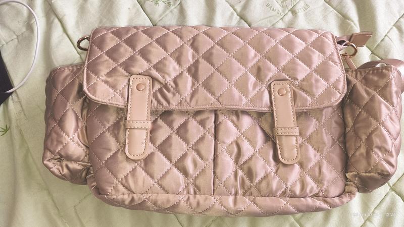 Сумка абсолютно новая, не была в исполнении, есть длинная шлея и есть крепление на ручку коляски/велосипеда. Цвет бежевый, в середине есть две термокарманы, также карманчики для бутылочек/поилочек по бокам. Держит форму (стенки сумки с уплотнением для поддержания формы). Размеры на фото