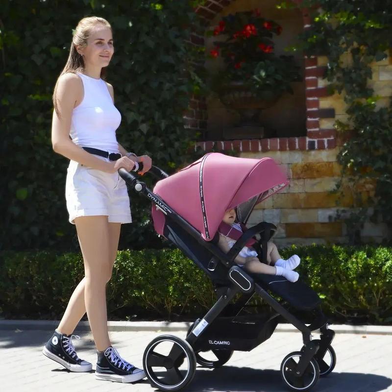 Прогулянкова коляска з регульованою ручкою el camino dynamic pro 1053n rose,дощовик, москі...