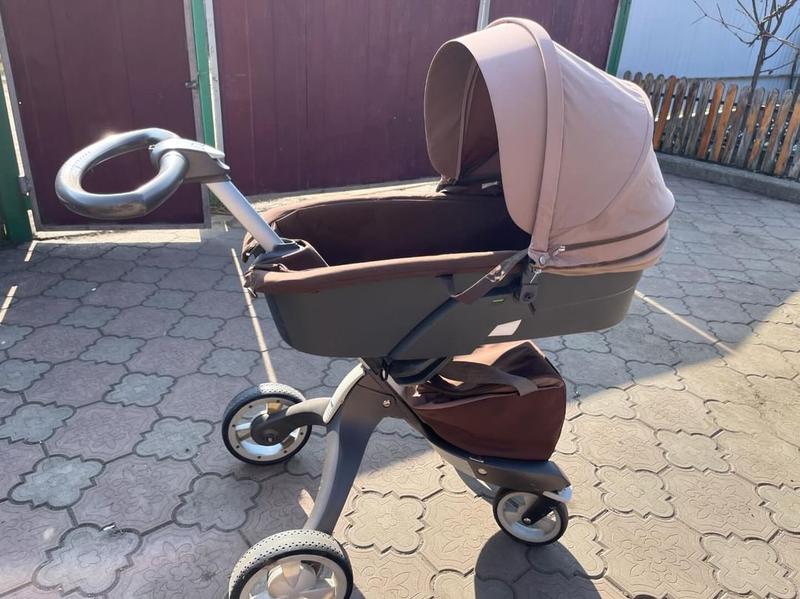 Брендовий візок, коричневого кольору, кришка трохи вигоріла, на ручці є подряпини. Люлька та прогулянка. Дуже маневрена та легка в перевозці (складається і знімається все дуже легко). В комплекті є змінна криша, москітна сітка, міхові рукавиці, дощовик та накидка. Візок після двох дітей )) Дуже якісний матеріал та стильний вигляд