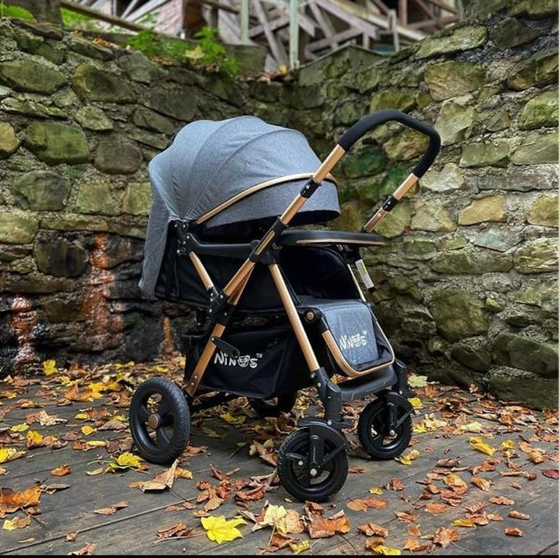 Виробник: Nino's Вік: Інше Тип коляски: Коляски-трансформери Тип: Коляски дитячі Перекидна ручка ( дощовик, чохол на ніжки, підсклянник) з нюансів кошика трохи порваний, під час делегації можна замінити)