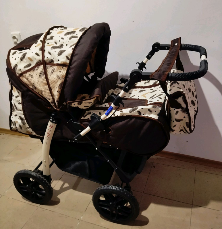 Виробник: Інший виробник Вік: До 2 років Тип коляски: Коляски-трансформери Тип: Коляски дитячі Коляска трансформер Зима- літо.В комплекті переноска для дитини, дощовик,сумка.Ручка регулюється по висоті. Колесо- піна.