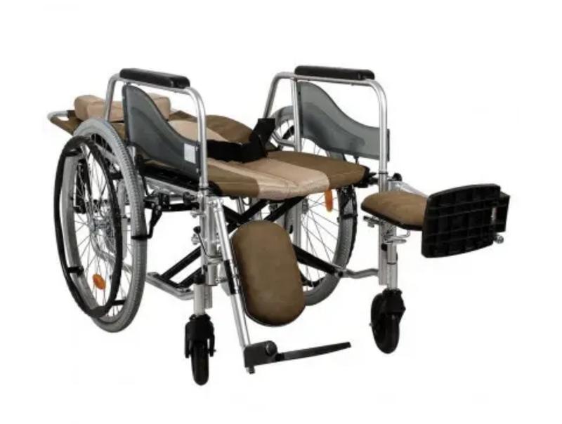 Різновид: для дому та вулиці Колір рами: хром Конструкція рами: складана Матеріал рами: алюміній Матеріал сидіння: штучна замша; сітчастий акрил Матеріал спинки: штучна замша; сітчастий акрил Ширина сидіння, (см): 45 Глибина сидіння, (см): 40 Загальна ширина, (см): 70 Ширина у складаному вигляді, (см): 34 Висота сидіння від підлоги, (см): 44 Висота спинки, (см): 49 Кут нахилу спинки, (град.): 90 – 180 Підголівник: знімний; замша; знімна подушечка Висота підголівника, (см): 30 Поруччя: знімні; накладки з пластмаси Підніжки: знімно-відкидні Регулювання підніжок, ін. опції: висота; кут нахилу; м'яка опора під гомілку Ремінь безпеки: так Противідкотна система: так Різновид коліс: передні колеса — литі; задні — пневматичні Передні колеса, (дюйми): 6 Задні колеса, (дюйми): 22 Вага, (кг): 20,3 Максимальне навантаження, (кг): 100 Країна реєстрації бренду: Італія Країна-виробник: Китай Особливості: Легка і міцна складана алюмінієва рама з противідкидною конструкцією. Сидіння і спинка виготовлені з міцної штучної замші, посередині — вставка з дихаючого, сітчастого акрилу з поролоновим наповнювачем. Така конструкція сприяє повітряній вентиляції тіла. Кут нахилу спинки, що регулюється. Спинка повністю опускається, перетворюючись на спальне місце для користувача. Знімний підголівник з м'якою подушечкою для зручності користувача. Знімні поруччя з м'якими накладками. Відкидні підніжки регулюються за довжиною, кутом нахилу, оснащені м'якою опорою для гомілки. Барабанна гальмівна система більш ефективна і довговічна. Кут нахилу спинки і гальма регулюються за допомогою клавіш на ручках для асистента. Кишеня для речей на спинці. Задні пневматичні колеса оснащені світловими відбивачами.