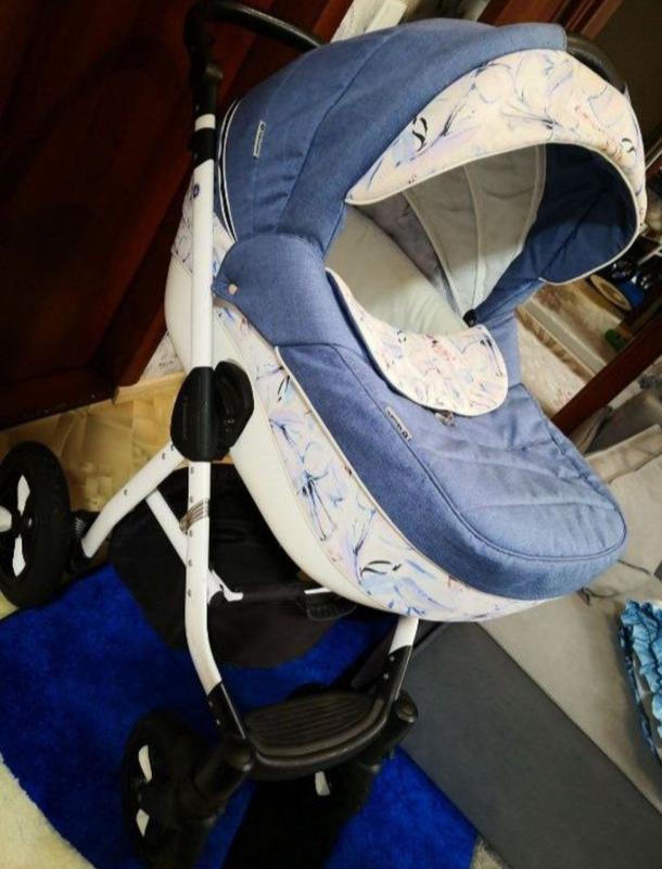 Стан 8/10 Есть следы пользования на раме, но при необходимости можно закрасить Надувные колеса, что легко и маневренно едут как по бездорожью так и по красивой дороге Удобна в управлении зимой Надежная В комплекте чехол на ножки для люльки Чехол на ножки для прогулочного блока Дождевик Москитная сетка Хорошая амортизация В пользовании было 8 месяцев Все работает По дополнительной информации воспользуйтесь сообщением