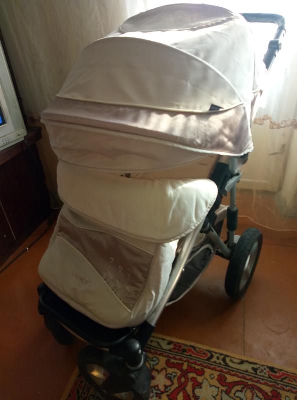Продаю очень удобную и маневренную коляску Geoby C780)) Плюсы - ДВА капюшона (один батистафный - к бамперу), москитная сетка, дождевик, очень теплая накидка на ножки, муфта на ручку, съемный матрасик, поворотные передние колеса, большой карман на капюшоне (замость сумки) и огромную корзину. Подстаканник для бутылочек. Еще - в сложенном виде стойка. Ребенку совершенно не видно. Зимой в ней очень тепло, а летом не жарко))) Все колеса проложены ремнями (практически не пробиваются). Минуса - ручка восстановлена (вывно на фото) и корзина немного с дырками. Ребенок ОТ СЕБЯ. Тележка очень маневренная и имеет мягкий ход. Не смотря на то, что ребенок от мамы, прохожим его совершенно не видно, а матуся видит своего ребенка через удобное окно сверху. Подходит от рождения. Накидка для ножек пристегивается к матрасу, поэтому ножкам всегда тепло и не дует. Дождь в ней каталась как принцесса в карете))