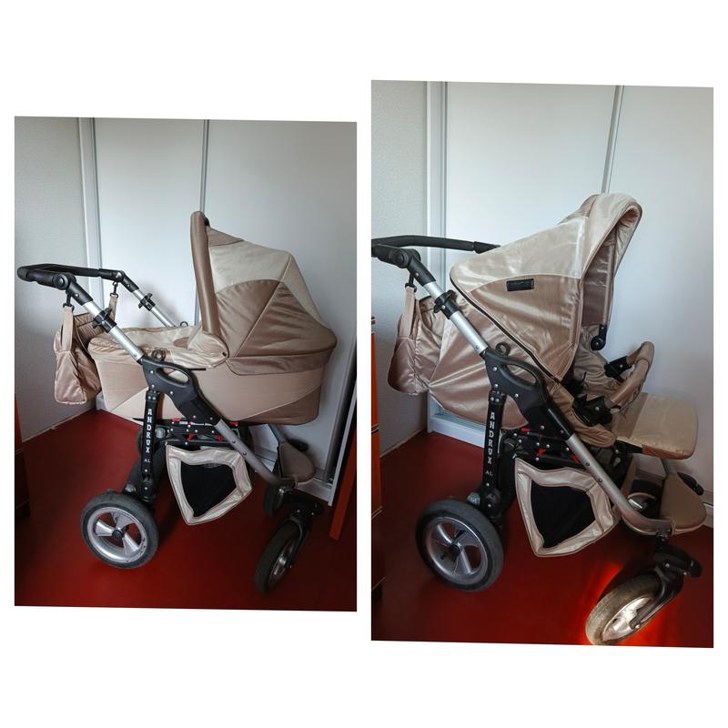 Красивый колясок, в нормальном состоянии. Легкий,цвет как на фото. В комплекті є дощовик,москітна сітка,чохол на ніжки. Колеса поворотные, батьковская ручка регулируется, остановка в прогулочном блоке регулируется в 4 положения. Подходит для мальчика и девочки. Ткань не выгорает!Цена 3000 грн. Есть нюансы,показала на последних трех фото, но они не влияют на движение тележка.