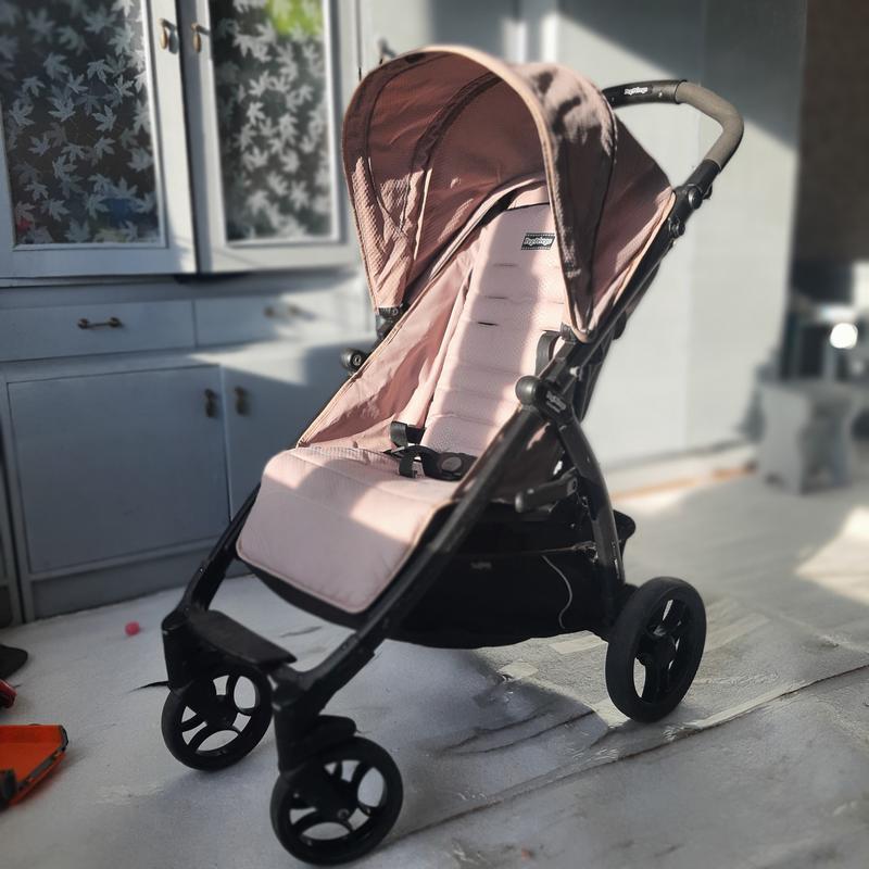 Качественный колясок итальянского бренда. Цвет беж, светло-коричневый. Унисекс. Все рабочее, все работает. Недостатчик - срубленный 1ремешок на плечо (меняется легко) Имеет царапки по корпусу. Корзина имеет пару дырочек диаментром меньше мм, выдерживает нормальный вес. Їздила мало. Чиста. Очень легкая в ходу, отлично проходит по ямам и бездорожью. Передние колеса фиксируются. Текстиль полностью снимается, легко стирать. Колеса непробиваемые, полиуритановые. Родительская ручка регулируется по высоте. Спинка плавно регулируется до лежачего положения. Держится хорошо. В лежачем положении можно открыть окно из сетки для вентиляции. На капюшоне имеет окошко из сетки, в яркую погоду надо немного наклоняться, потому что за счет затемненной пленки немножко хуже видно ребенка. Подставка для ножек наклоняет и поднимается. В сложенном виде стоит самостоятельно. В багажник авто помещается. Вес около 8кг.