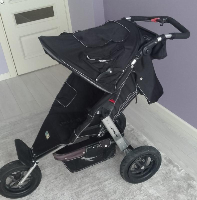 Тележка немецкого бренда TFK. Очень надежный, прочный, очень маневренный. -для детей от 6миссий до 4р.( до 20 кг). -пятиточечные ремни безопасности мышц мягкими накладками. -три положения спинки. -подножка регулируется в 2 положения. -ручной тормоз. -ручка регулируется на ваш рост. - 3 колеса большого диаметра, надувные с амортизацией. -очень легко складывается,книжкой, легкая в транспортировке. -имеет очень теплый мешок на замочке, что очень важно и тепло зимой. -для лета в козырьке есть москитка сетка, тоже на замочке и легко прячется. -собна вместительной корзиной, имеет множество карманов на козырьке и на рукоятке. Нам послужила безупречно, имеет некоторые потертости, местами выгорела, поломок никаких нет. Стоимость 1800 гривен Самовозовив Львов.