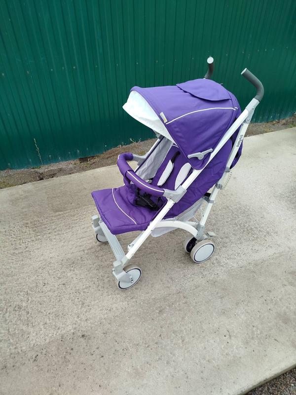 Прогулочная коляска-трость очень компактная и стильная в очень хорошем состоянии. ВЕС 7.4 КГ Размер в разложенном виде 85×43×108 см Ширина сиденья 33 см Безопасной оплаты на коляску нет