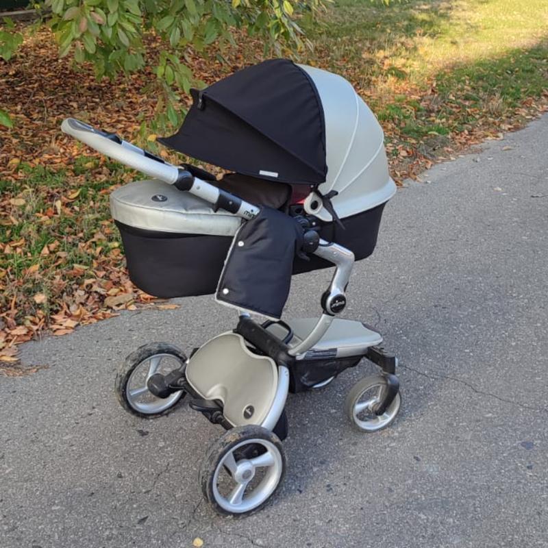 Шикарный козырек от фирмы Мима. Легко складывается. В сложенном виде занимает очень мало места. Очень маневренная. Зручна. Легкая. В комплекте люлька, автокресло, прогулочный блок, перчатки, конверт,