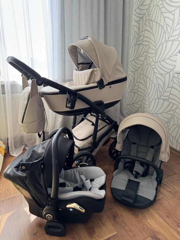 Удобная и маневренная тележка Junama Space 2 в 1, а также автолюлька Tako Junama Купились поздней весной в магазине Антошка ( тележка 22400, автолюлька 5800] Тележка выполнена из эко кожи,в отличном состоянии. Эко кожа и текстиль ( використовували спец матрасики, тож напряму он с ребенком не контактировал), как в люльке так и в прогулочном блоке без дефектов. Наличие всех комплектующих: Алюминиевые шасси с колесами ;Люлька выполнена из эко кожи ;Прогулочный блок выполнен из эко кожи;Сумка в виде рюкзака с пеленальным матрасиком ;Чохол на ножки; Кошик для покупок; Дождевик; Москитная сетка;Подставка-стакан для ПляШечКИ; Коробка. 3 недостатков: Из недостатков: присутствуют следы использования на дисках колес и раме и небольшое пятно от воды (текло с бутилочки) на дне сумки внутри, но оно никак не влияет на внешний вид. В комплекте с тележкой предоставляем автолюльку! покупали отдельно), незаменимая вещь в первые полугода жизни, очень удобная ( есть пару небольших царапин на золотых вставочках) Тележкой остались полностью довольны, как эстетически так и функционально, но уже решили переходить на прогулочный. Цена за все. В Киеве возможно приобрести лично или отправка по почте.