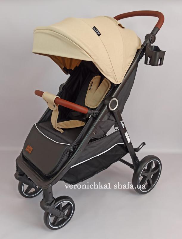 Детский прогулочный коляска коляска "JOY" В комплекте футкавер, подстаканник, дождевик. Характеристики: • спинка регулируется с помощью ремешковой системы, плавно вплоть до полностью горизонтального положения • легко складывается, занимает мало места, удобна для транспортировки • удобный, компактный механизм складывания • может стоять в сложенном виде • размер передних колес: 7”, поворотные, съемные, материал PU • Размер задних колес: 10``, материал PU • Глибокий капюшон • Смотровое окошко из сетки на капюшоне • 5-ти точечные ремни безопасности • тормозная система нового вида на задних колесах • мягкая подвеска: амортизаторы на передних и задних колесах • жесткий защитный бампер • вместительная корзина для покупок • обивка легко снимается, можно стирать при 30°С Вес коляски: 9,6 кг Вес с упаковкой: 10,8 кг
