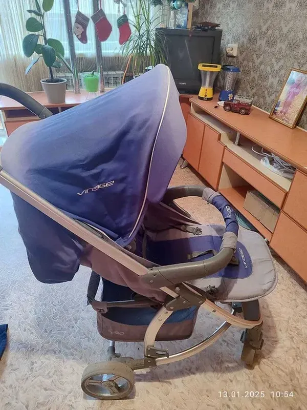 Коляска легкая и удобная в управлении. Спинка откидывается в лежачее положение. Есть прозрачное смотровое окошко. В комплекте чехол на ножки, сумка для принадлежностей, подстаканник и дождевик. Легко складывается и раскладывается, свободно войдет в небольшой багажник или лифт. Есть карман сзади и корзина внизу. Состояние - б/в, с недостатков - цвет выгоров.