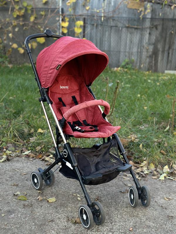 Прогулянкова коляска Besrey Дуже класна і легка. Швидко і компактно складається Ідеально підходить для подорожей, можна брати в літак. Є чохол. Вага 4,5 кг Спинка не розкладається Стан гарний, можливо потребує прання.