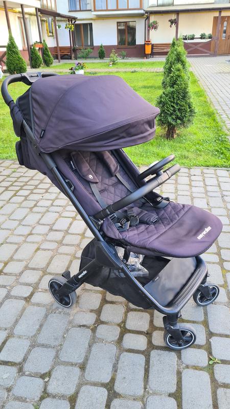 Коляска прогулочная Easywalker Jackey. В хорошем состоянии после одного ребенка. Цвет черный Очень долго я обирала и сравнивала коляски, так как у меня был ряд критериев обязательных. По первому она должна была быть легкой и компактной в сложенном виде и при этом в разложенном виде удобной для ребенка как для сна так и для активных прогулок. Козырек должен был быть обязательно большой (что является редкостью для прогулок), чтобы спать ребенку было комфортно. Бампер должен быть съемный, чтобы ребенок имел возможность сам залезть в коляску. Ремни безопасности закрываются независимо друг от друга, то есть можно отдельно по очереди. Складывается автоматически, нажав на кнопку. Если у вас такие же +- требования к коляске, то эта модель Вам идеально подойдет!!! Дополнительно было приобретено и идет в комплекте к коляске: Дождевик, москитная сетка мякочка с легким доступом (молния) к ребенку, органайзер, руль (съемный) для развлечения - ребенок управляет как будто едет на авто:), сумка для транспортировки. Система автоматического складывания. Экологические ткани Уникальная система аксессуаров. Выдвижной козырек от солнца XL. Регулируемая по высоте подставка для ног. Велика корзина для покупок. Ручка и бампер из экокожи. Габарити: Вес коляски: 7,5 кг Максимальный вес ребенка: 22 кг Размер в сложенном виде: 56 х 47 х 26 см. Размер в разложенном виде: 80 х 47 х 105 см. Диаметр переднего колеса: 13,7 см Диаметр заднего колеса: 16,7 см Максимальная нагрузка на корзину: 5 кг