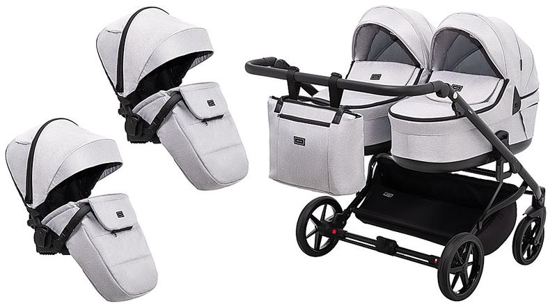 Коляска 2 в 1 для двойни adamex leo duo tip tk-1 светло-серый