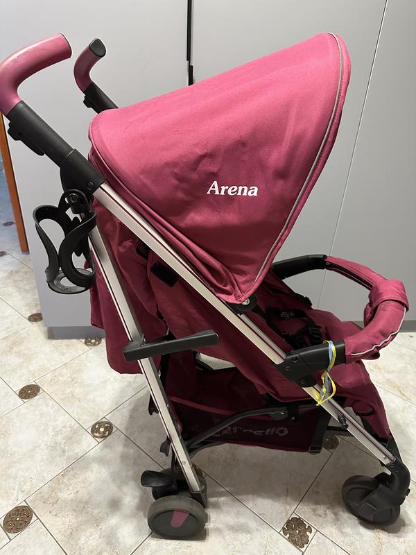 Коляска Carrello Arena, бордового кольору, складається тростиною. Спинка розкладається у 3х положеннях, включаючи положення «лежачи», козирьок - 2 положення. Знизу є вмістка корзина, ззаду карман для дрібниць, збоку - підстаканник, є накидка на ніжки, оглядове вікно, 5-ти точковий ремінь безпеки. Коляска дуже зручна при перевезенні як в автомобілі, так і в транспорті загального користування. Передні колеса мають функцію поворотності, з можливістю блокування; дуже легка і маневрена при їзді. Тканина водовідштовхувальна. Розмір в разлож. вигляді, ДхШхВ - 86х51х110 Розмір люльки, ДхШхГ - 82х35х21 Вага коляски - 9 кг. Коляска у відмінному стані.