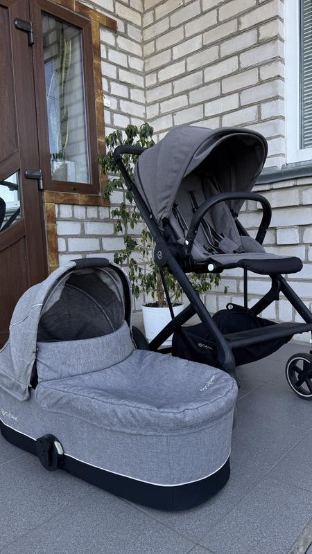 Візочок Cybex Balios S Lux у комплекті з люлькою. Виробник Німеччина Це модель 2 в 1, що включає прогулянковий блок та люльку для новонароджених. Підходить для дітей від народження (з люлькою) до приблизно 4 років (з прогулянковим блоком), максимальна вага дитини – 22 кг. Особливості: Має легке, компактне шасі з амортизаторами на всіх колесах, що забезпечує комфортну їзду. Ручка коляски та бампер виконані з еко-шкіри. Компактна, займає мало місця. Хороша амортизація, непробивні колеса. Маневренна, можна управляти однією рукою. Велика простора люлька Є потертості по боках на металевій частині. • Комплектація : -шасі -прогулянковий блок -люлька та матрас -корзина для покупок -дощовик Вага шасі з люлькою: приблизно 12,5-12,6 кг. Вага шасі з прогулянковим блоком: приблизно 11,7 кг.