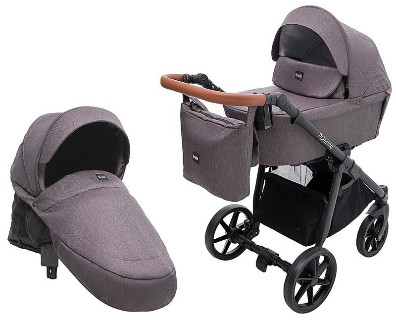 Спальный блок коляски Palermo отлично подходит как для летних новорождённых, так и для детей, рождённых зимой. В холодную погоду малыша защитят от ветра и снега большой капюшон и тёплая накидка на ножки. Дополнительный высокий отворот накидки плотно прилегает к высоким бортам люльки, исключая проникновение сквозняков к ребёнку.В жаркую погоду используйте вентиляцию в изголовье люльки: просто откройте молнию, чтобы обеспечить свежий воздух и защиту от жары, сохраняя при этом прохладную тень внутри. Вентиляционное окно выполнено из прочной сетчатой ткани, что создаёт безопасный обзор для малыша, особенно когда он начинает исследовать мир, лёжа на животе.Просторное сиденье Bair Palermo можно устанавливать как лицом к маме, так и по ходу движения. Для сна спинка сиденья опускается в горизонтальное положение. Подножка регулируется по высоте независимо от спинки — в верхнем положении удлиняет спальное место. Тёплая накидка пригодится в прохладные дни. Пятиточечные ремни устанавливаются по высоте в зависимости от роста ребёнка. Откидной с любой стороны бампер существенно упрощает размещение ребёнка в коляску.Лёгкая, но прочная рама легко складывается и защищена боковым замком от случайного раскладывания. Мягкие колёса и регулируемая амортизация обеспечивают коляске плавное передвижение. Тормоз, расположенный в виде педали между задними колёсами, активируется нажатием ногой. Передние колёса могут быть зафиксированы для устойчивости движения по сложным участкам дороги.Ручка коляски Palermo, выполненная из эко-кожи, регулируется по высоте для удобства родителей разного роста. Багажная корзина с сетчатыми сторонами и подстаканник удобно использовать на прогулках. Сумка для мамы может быть закреплена на раме коляски или носиться на плече.