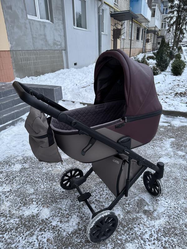 Комплектація 2в1: • люлька для новонародженого • прогулянковий блок Переваги: • велика, простора люлька • м’який хід, хороша амортизація • маневрена, легко керується однією рукою • поворотні передні колеса з фіксацією • регульована ручка • глибокий капюшон, добре захищає від вітру та холоду • тепла накидка на ніжки • місткий кошик для покупок • сумка для мами в комплекті Стан: Коляска вживана, але повністю справна. Є незначні сліди використання на еко-шкірі (видно на фото), які не впливають на функціональність. Всі механізми працюють ідеально.
