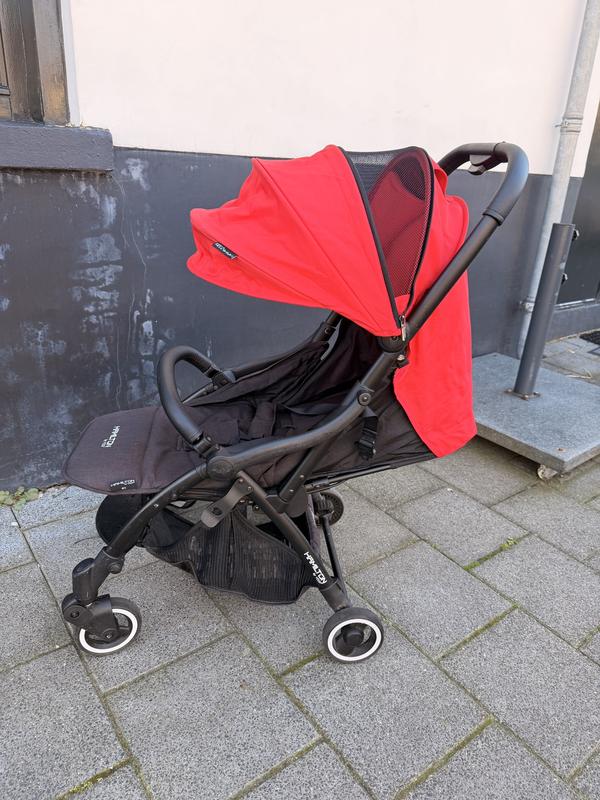 Прогулочная коляска модели Hamilton S1 MagicFold. Это ультракомпактная тележка, отличающаяся системой автоматической сборки. Производство Нидерланды. Все функции работают, по детальной информации воспользуйтесь в частными уведомлениями. Основные Характеристики: Механизм складывания: Запатентованная система MagicFold, которая позволяет сложить коляску одним движением руки. Дизайн: Черное шасси с красным капюшоном и узнаваемым логотипом Hamilton на подножке и спинке сиденья. Безопасность: Оснащена 5-точечными ремнями безопасности с мягкими накладками. Мобильность: благодаря своим компактным размерам в сложенном состоянии, подобные модели часто позволяют брать их на борт самолета в качестве ручной клади. Тележка также имеет регулируемую спинку, что позволяет ребенку отдыхать во время прогулки, и глубокий капюшон для защиты от солнца