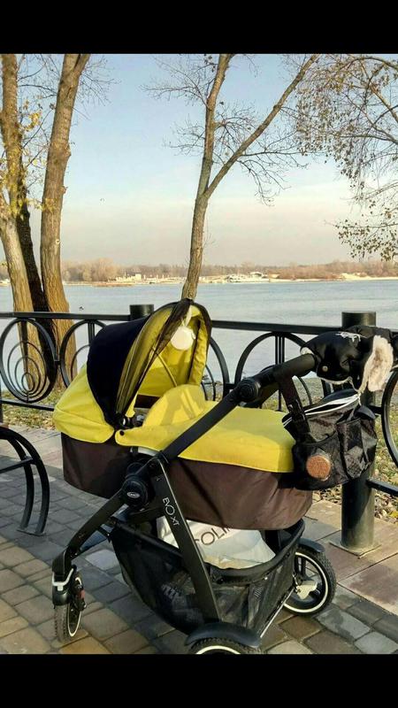 Коляска зручна , не важка , після однієї дитини , текстиль цілий , чистий , без плям, на шасі є не великі подряпини і трохи стертий протектор на калесах. Користувалися коляскою півтора року. Є дощовик , на прогулянці немає накидки на ніжки, вона не йшла в наборі, додатково віддам маскитку - захист від сонечка, на фото з люлькою вона одягнена на капюшоні, звичайну москітку, простиральце на гумці для матрацика в люльку, вкладиш - чохол для ніжок і рукавички для зими, це все купувала окремо . Будь-які додаткові фото скину в вайбере. Прогулочный блок легко и просто снимается и устанавливается на шасси; возможна установка как лицом к маме, так и по ходу движения; спинка и подножка регулируемые, можно подобрать комфортное положение (в том числе для сна); 5-ти точечные ремни безопасности защитный бампер очень лёгкая; колеса одинарные: передние поворотные с амортизаторами; удобная корзина для покупок. Размеры коляски Graco Evo XT: ширина шасси: 60 см; размер прогулочного сиденья: 85х28 см в сложенном виде длина: 52 см, ширина: 41 см; высота: 106 см; диаметр колес: 18 и 23 см вес: 9,5 кг. Люлька: Люлька вместительная, глубокая, но при этом очень лёгкая, вес всего 4 кг. С колёсной базой общий вес составляет 10,5 кг. Подходит для малышей с рождения. Размеры: 84 см х 57см х 43см Дно в люльке пластиковое, борта текстильные на каркасе. Капюшон и все текстильные части легко снимаются, их можно стирать. При необходимости люлька складывается, и будет занимать минимум места во время хранения. Механизмы складывания находятся на бортах люльки. Ручки для переноски нет, но в капюшоне есть отверстие-капля около каркаса, что позволяет переносить люльку и без проблем устанавливать её на колёсную базу. Снять люльку довольно легко, при одновременном нажатии на кнопки, по обеим сторонам люльки. На дне люльки есть ножки, на случай, если люльку нужно будет поставить на пол. Капюшон регулируется по глубине в трёх положениях. Матрасик из синтетической ткани, легко чистится, пропускает воздух. В холодную пору года малыша от ветра и холода можно спрятать под тёплым пологом, который пристёгивается двумя кнопками. GRACO EVO XT універсальна коляска 2 в 1, розроблена, що б легко подолати будь-які перешкоди, оснащена колесами, які не проколоти під час прогулянки. Основні переваги: Коляска призначена для дітей з народження і до 3х років. Сидіння переставляється. Ергономічна ручка, регульована по висоті, підлаштовується під зріст батьків. Поворотні передні колеса. Крила на передніх і задніх коліс для захисту від бруду. Компактно складається однією рукою.