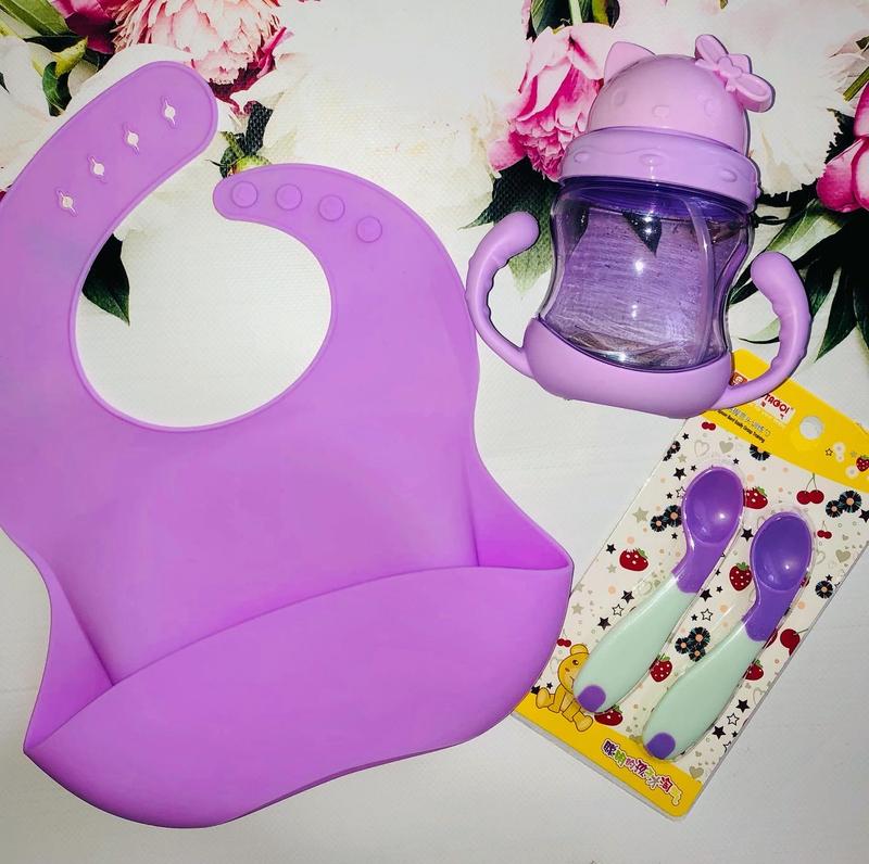 Слюнявчик силиконовый , ложечки термо ( изогнутые ) для удобства во время кормления Поильник с трубочкой Отправка Нп или укрпочтой