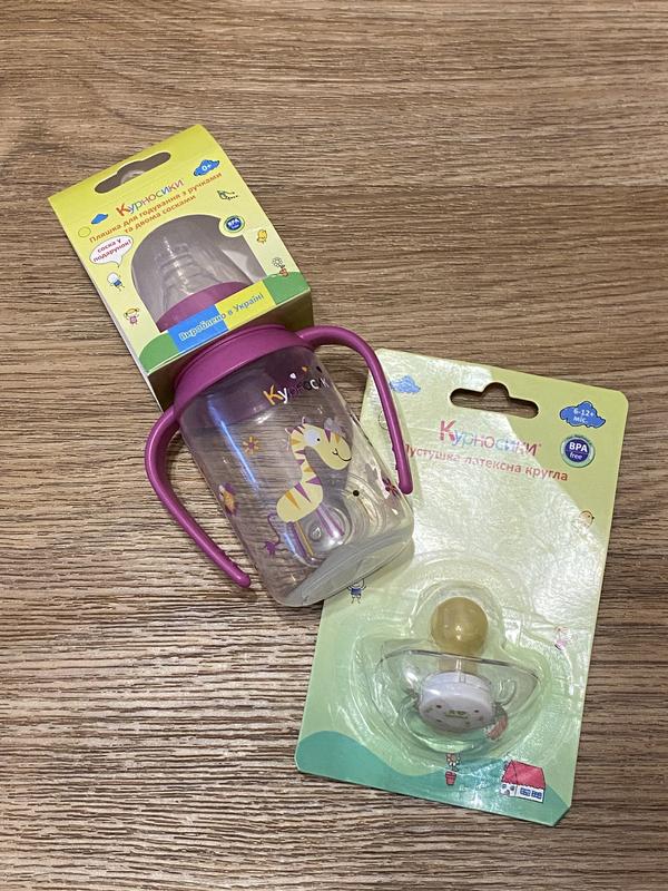 Пустушка латексна кругла Бутылочка с ручками и двумя сосками фирмы Курносики