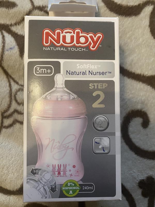 Нет ничего лучше для новорожденного, чем серия Natural TouchTM. Бутылочка SoftFlexTM Natural Nurser разработана для того, чтобы сочетать грудное вскармливание и кормление из бутылочки. Новая соска NubyTM идентична материнскому соску, растягивается при сосании, обеспечивая ребенку полное ощущение кормления материнскими грудью, что значительно облегчает переход от грудного вскармливания к кормлению из бутылочки. Супер антиколиковые клапаны у основания соска снижают риск возникновения кишечных коликов у малышей, а мягкие шишки нубики успокаивают десны малыша при прорезывании первых зубов. Силикон.
