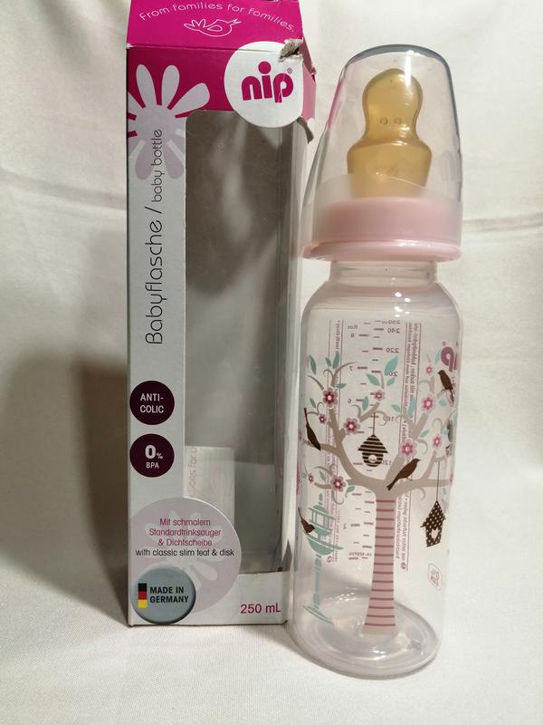Пляшечка пластикова nip 250 мл із латексною ортодонтичною соскою, середній потік м, 6+ міс