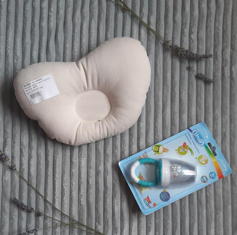 Ортопедична подушка, куплена в магазині "Модники та модниці" з цінником, нова. Ніблер "Lindo" новий, в упаковці. Вартість за набір! Чудова ідея для подарку немовляті.