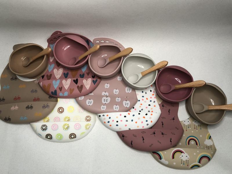 Силиконовый набор для кормления Нагрудник + тарелочка+ложка Можно комбинировать цвета по вашему вкусу Тарелочка + цветной нагрудник - 430 Однотонный -380 С сердечками уже нет Есть еще большие наборы с кружками и секционными тарелками смотрите Мои объявления