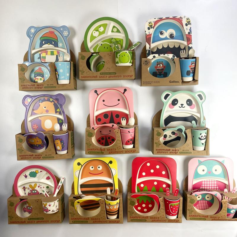 Новий! В наявності є лиш бджілка декілька позицій Подарунковий бамбуковий посуд для дітей 🎁 ціна 💫Екологічний та максимально безпечний для першого прикорму Набір складається з 5 предметів: 🔹великої плоскої тарілки 🔹салатниця 🔹чашка з ручками або склянку 🔹вилка, ложка ❗️Можливе пошкодження упаковки