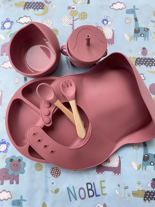 Набор силиконовой посуды который состоит из шести предметов🔥 🌸секционная тарелочка 🌸тарелочка для супчика 🌸нагрудник 🌸поильник 🌸ложечка 🌸вилочка Цена