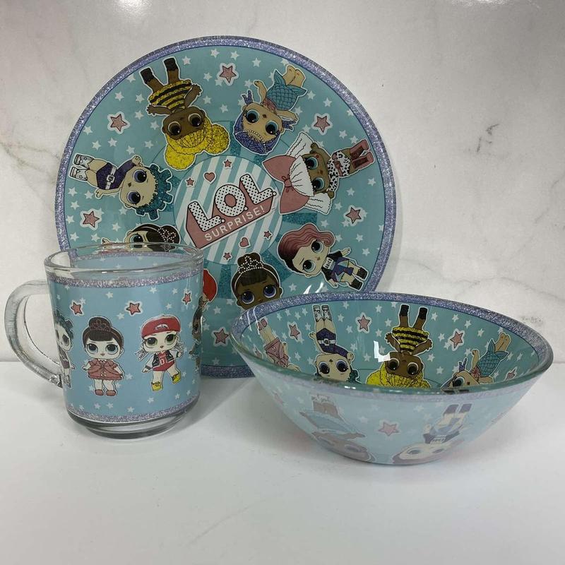 Набор детской стеклянной посуды 3 предмета "лол" синий 4848-1