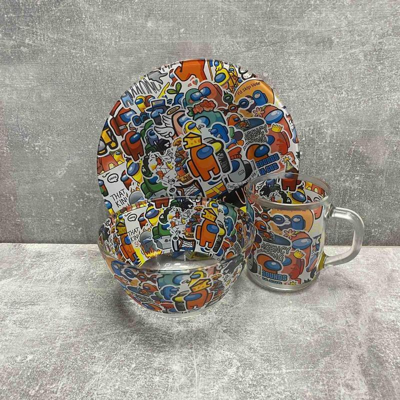 Набор стеклянной посуды тарелка пиала и чашка among us 4045