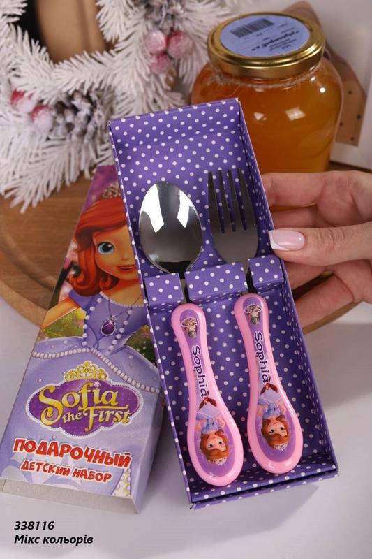 Дитячий подарунковий набір столових приборів “Sofia the First” 🎀👑 🔹 Чудовий набір для маленьких принцес! Ложка та виделка зручного розміру з яскравим дизайном улюбленого мультфільму зроблять прийом їжі веселішим та цікавішим. 📦 Що в комплекті? ✔ Ложка та виделка з нержавіючої сталі ✔ Зручні пластикові ручки з малюнком Софії ✔ Подарункова коробочка ✅ Переваги: ⭐ Безпечні матеріали – нержавіюча сталь та якісний пластик ⭐ Зручні для дитячих ручок ⭐ Ідеально для навчання самостійного прийому їжі Чудовий подарунок для малюка! 🎁 💌 Відправка Новою Поштою та Укрпоштою. 🚀 Замовляйте зараз – обмежена кількість!