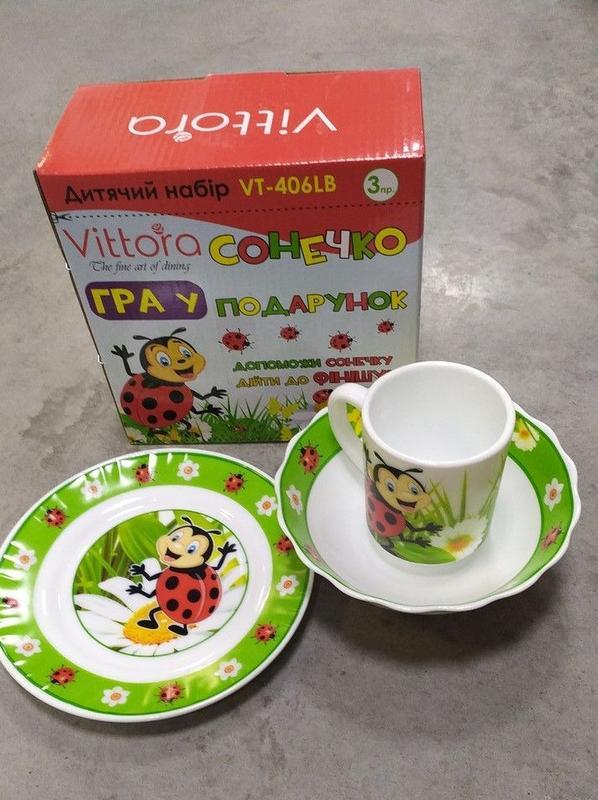 Кілька примірників у наявності Торгова марка: Vittora Кружка 230 мл Тарілка дрібна (17.5 см) Салатник (15см) Матеріал: скло Використання в посудомийних машинах: так Використання в мікрохвильових печах: так Індивідуальна коробка: так Кількість в наборі: 3 шт Виробник: Vittora Тип: Набір посуду Кількість предметів в наборі: 3 Матеріал: Кераміка Подарункова упаковка: Так Країна виробник: Китай