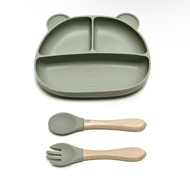 Дитяча тарілка поділена на три секції, виготовлена з гелевої рідини. Дуже легка Розміри - 18х15 Колір - Блакитний Тип візерунка - Твердий В комплекті - Виделка, та ложка. Не містить BPA (бісфенол-А). При виробництві посуду використовуються натуральні барвники. Колір - Блакитний, Жовтий, Хакі
