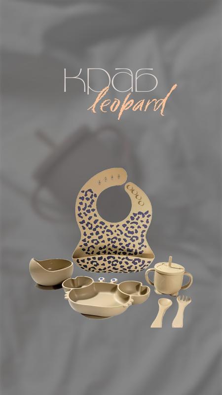🦀Набор состоит из 6 предметов: - нагрудник с карманчиком - тарелка на присосках на 3 секции в виде крабика - миска на присосках - чашка с крышкой - силиконовая вилка -силиконовая ложка TM Little Ma - счастливое детство и спокойное материнство!