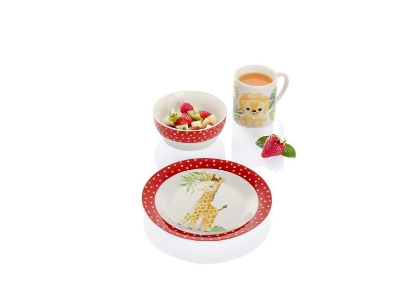 Можна мити в посудомийній машині : так. Можна використовувати в мікрохвильовій печі : так. Матеріал : порцеляна. ✓ У милому дизайні тварин ✓ Набір з тарілки, миски та кухля Набір дитячого посуду LIVARNO, 3 предмети Характеристики У милому дизайні тварин Виготовлено з високоякісного порцеляни (New Bone China) Набір з тарілки, миски та кухля 3-частинний Корисний об'єм: Чаша: прибл. 260 мл, Чашка: приблизно 200 мл
