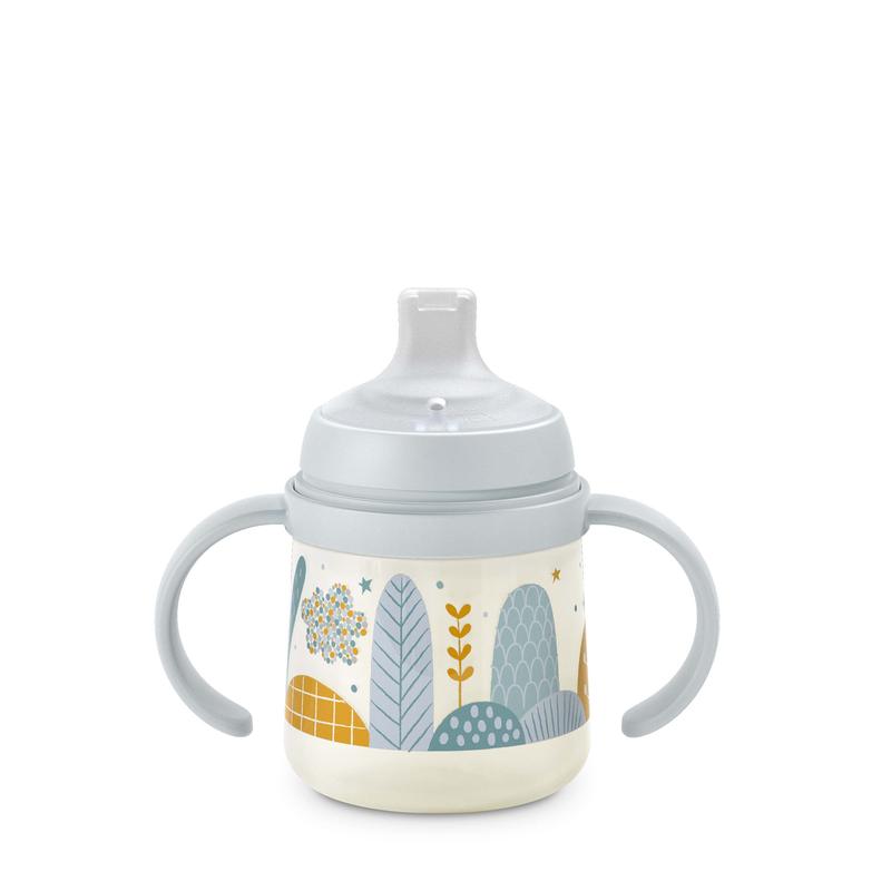 Вместимость - 150 мл Цвет - голубой Количество - 1шт Рекомендуемый возраст - с 6 месяцев Материал соски - силикон Переход от бутылочки с соской к первым учебным чашкам вашего ребенка будет настолько легким, что вы вряд ли заметите, как быстро это произошло. Поильник-непроливайка эргономичной формы с гладким и мягким силиконовым носиком, кольцом с ручками и защитной крышкой. Благодаря легкому и инновационному дизайну, приспособленному к маленьким ручкам, научиться пить без посторонней помощи становится проще, чем когда- либо. Силиконовый носик имеет антиколиковый клапан. Все продукты не содержат BPA, клинически протестированы и изготовлены фармацевтическим испанским производителем.