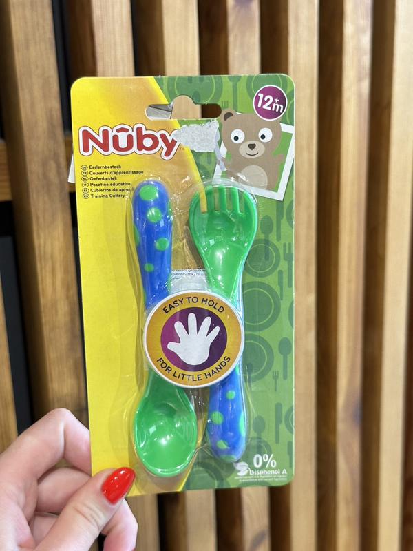 Когда малыш уже сам научился подносить ложку ко рту, пора переходить к следующему этапу. Яркие тренировочные наборы сделаны из безопасного, двухкомпонентного пластика и мягкого материала, которым невозможно случайно ранить ребенка. Когда дети начинают проявлять интерес к самостоятельному приему пищи, необходимо, чтобы у них была возможность пользоваться соответствующими приборами. Важно помнить, что посуда для малышей должна быть не только безопасной, но и разработанной таким образом, чтобы малышу было удобно им пользоваться. Цветной набор Nuby для второй стадии обучения сделан так, чтобы отвечать всем этим особым потребностям. Приборами из набора одинаково удобно пользоваться как правшей, так и левшей. Мягкая ручка удобно помещается в маленькой ладошке малыша, развивая его интерес к самостоятельному кормлению. Особенности: Удлиненная, как сравнить с первым этапом, ручка с двумя изгибами Разработано специально для детских ладошек Рельефная поверхность ручки Путь к самостоятельности Ручки вилок и ложек второй стадии больше похожи на взрослую посуду
