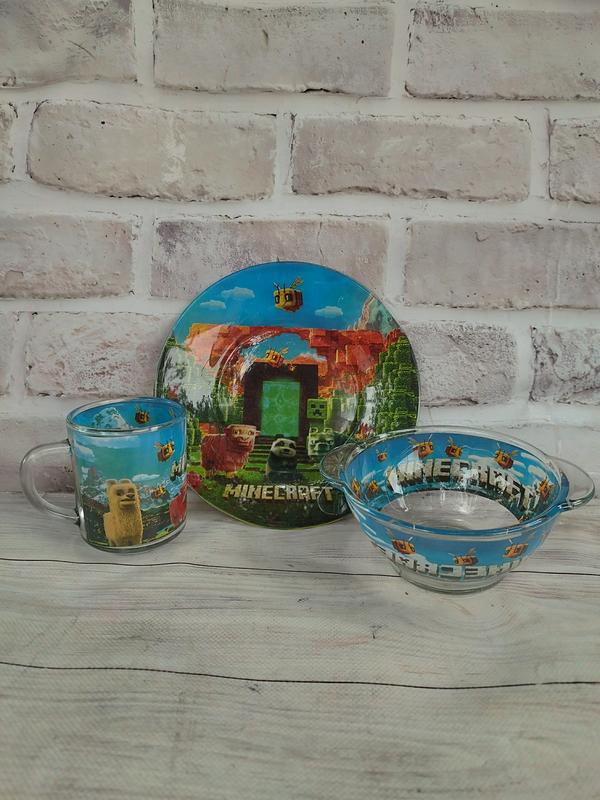 Детский набор столовой посуды metr+ minecraft стеклянный 3 предмета min1