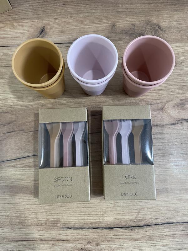 Набір бамбукового посуду: 6 склянок, 6 ложечок, 6 виделок Можна придбати окремо стакани, окремо прибори